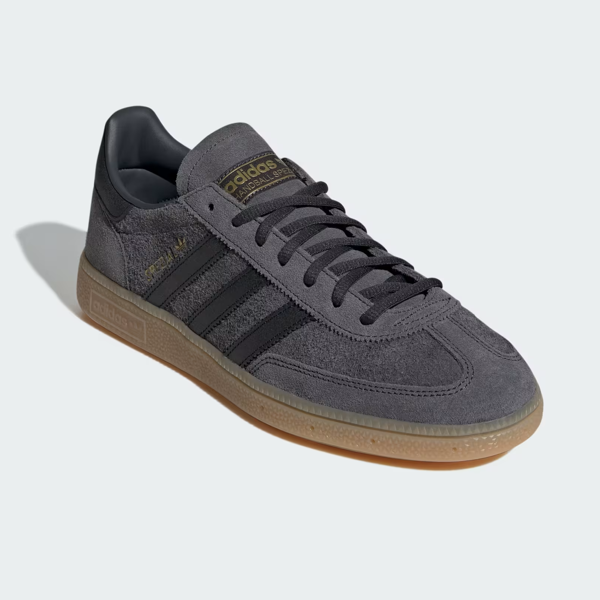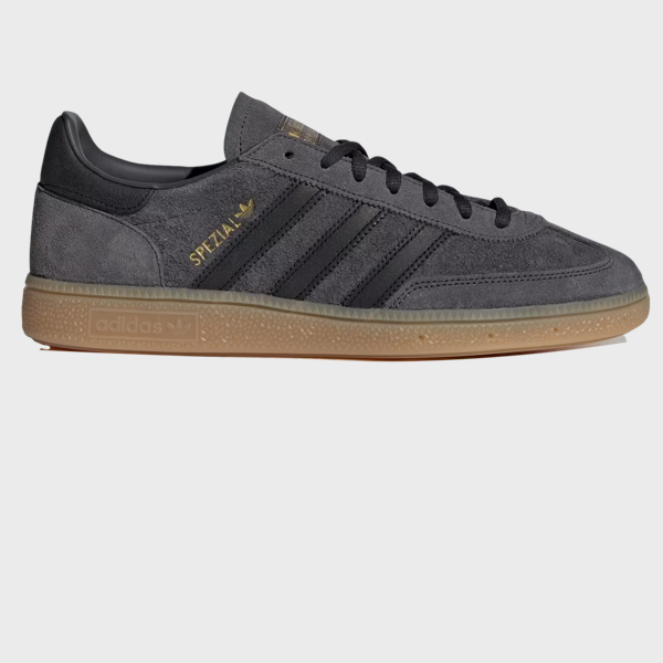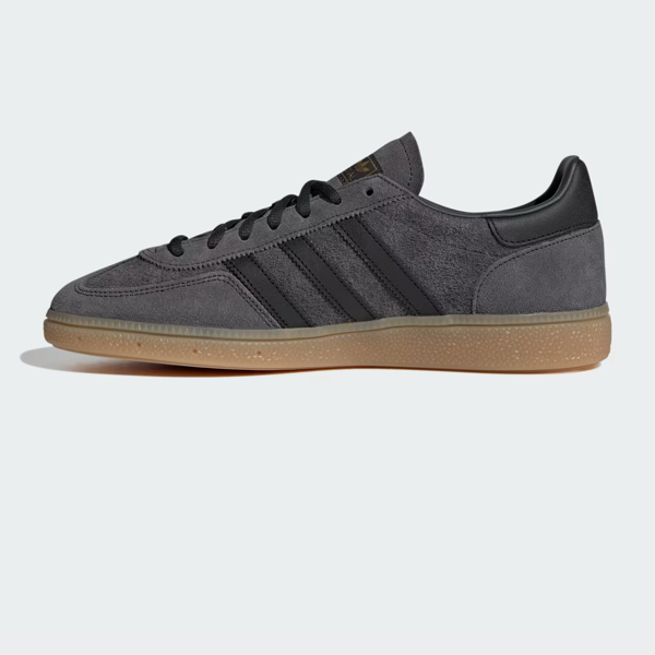 The Adidas Handball Spezial in Carbon / Core Black / Gum is a terrace classic reworked in a dark, understated palette.