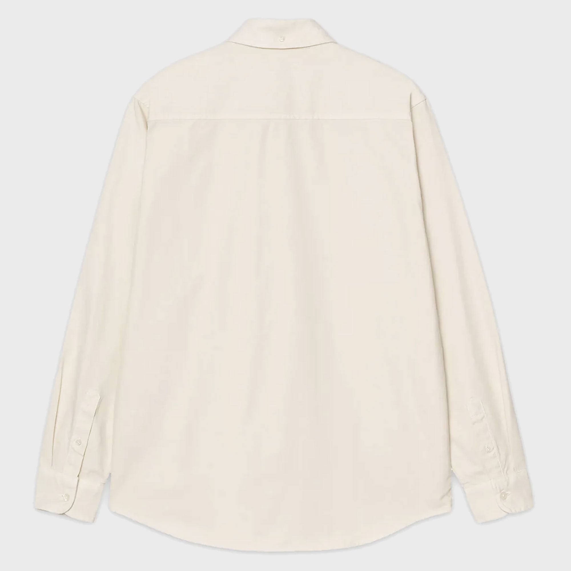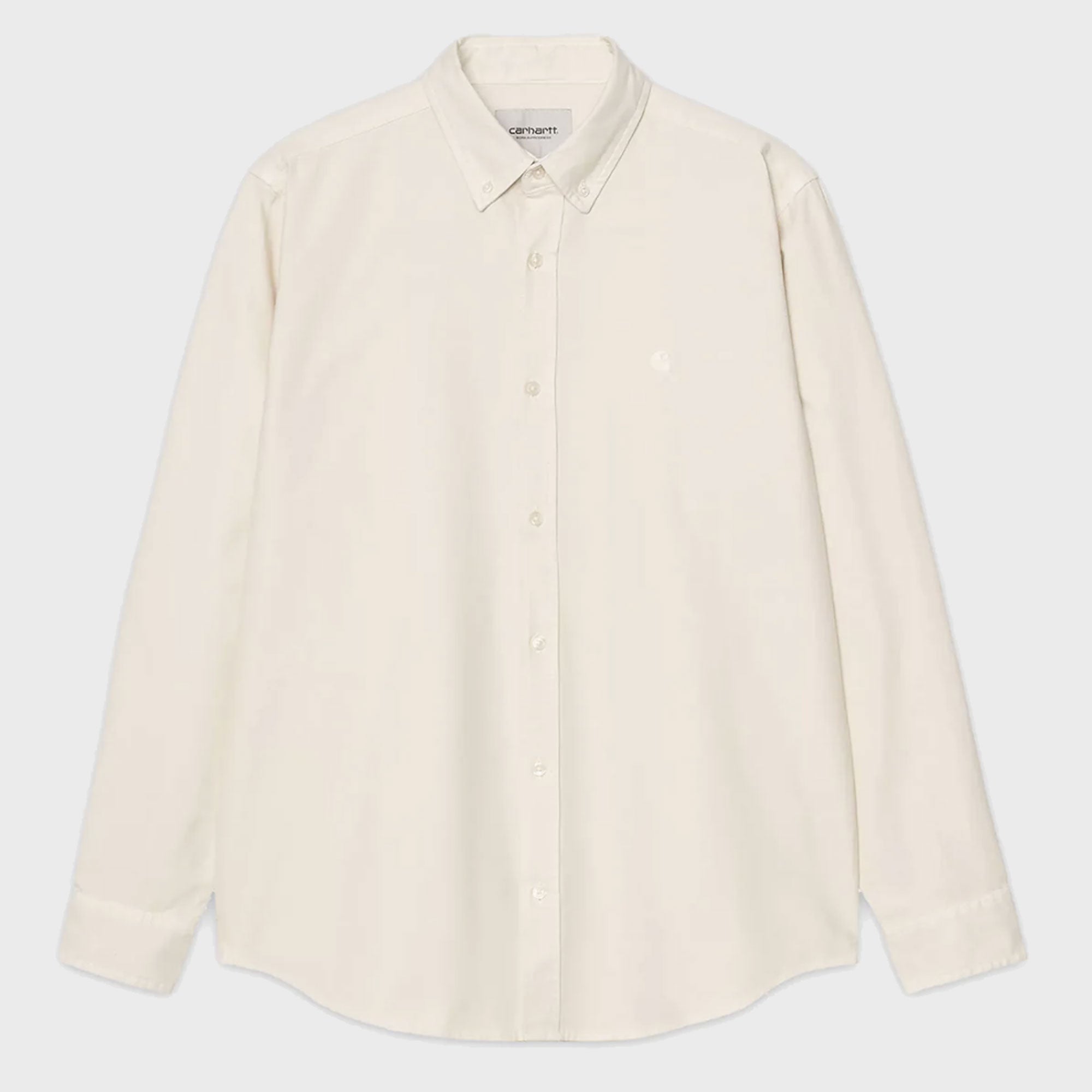 The L/S Bolton Shirt is a classic button-down style and has been woven from Oxford cotton in a regular fit, and features a curved hem. It has been garment-dyed resulting in a subtle variation in color throughout and a softer feel. It is finished with a button-down collar and subtle embroidered Carhartt WIP 'C' Logo at the chest.