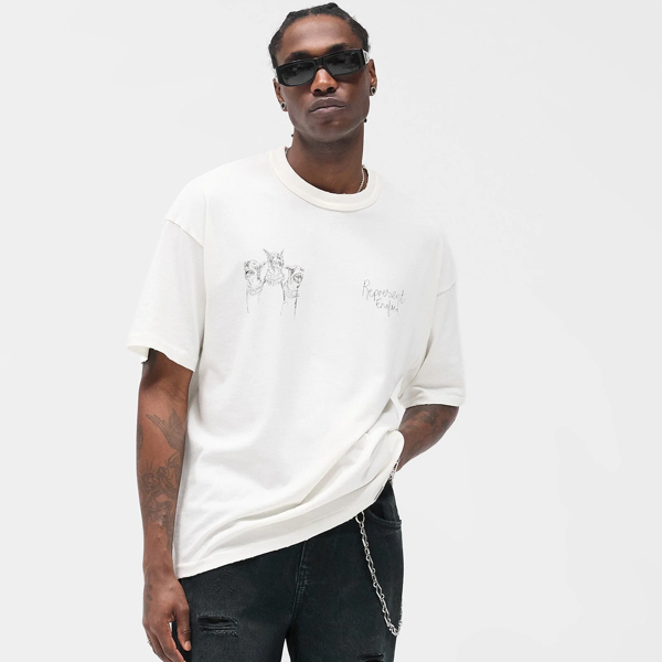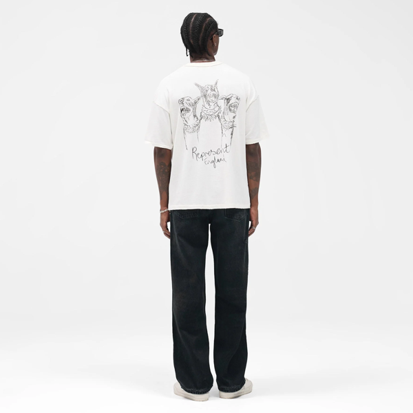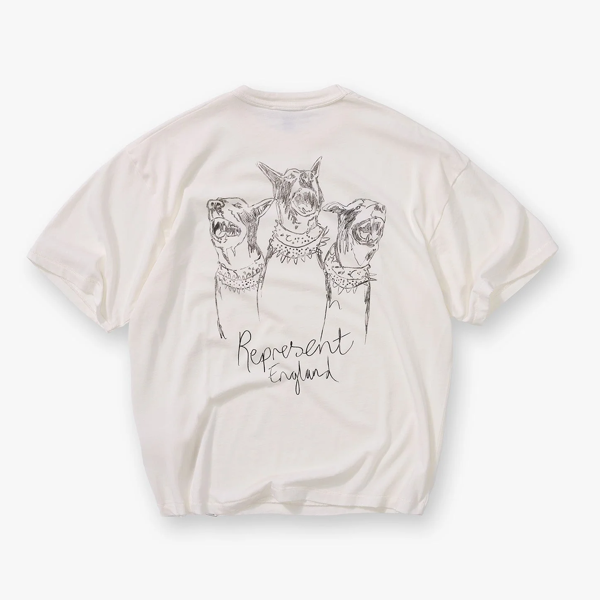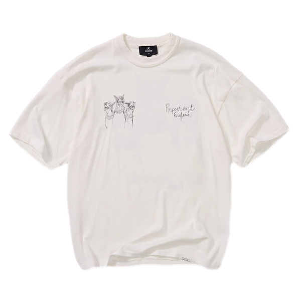Introducing the Hand Drawn Thoroughbred T-Shirt in Flat White, crafted from 220GSM cotton with an oversized fit. The t-shirt carries a hand-drawn Thoroughbred graphic with Represent England script across the chest and back. Designed with a rib collar and ladder stitch detailing, the piece is subtly distressed at the hem and cuffs for a vintage edge. Finished with our signature metal bar at the hem.